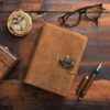 vintage handmade leather journal. Crafted with genuine leather, it radiates authenticity and charm, perfect for those who appreciate classic craftsmanship. The premium antique lock closure adds a touch of elegance and security, ensuring your thoughts and memories are safeguarded within its pages. Inside, you’ll discover 200 brown handmade pages, providing ample space for your musings, sketches, and stories to unfold. Whether it’s for journaling, sketching, or planning, this versatile journal is a timeless companion for your creative endeavors. Treat yourself or a loved one to this exquisite piece, a celebration of tradition and creativity